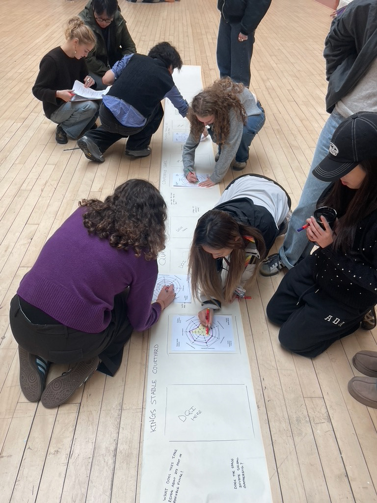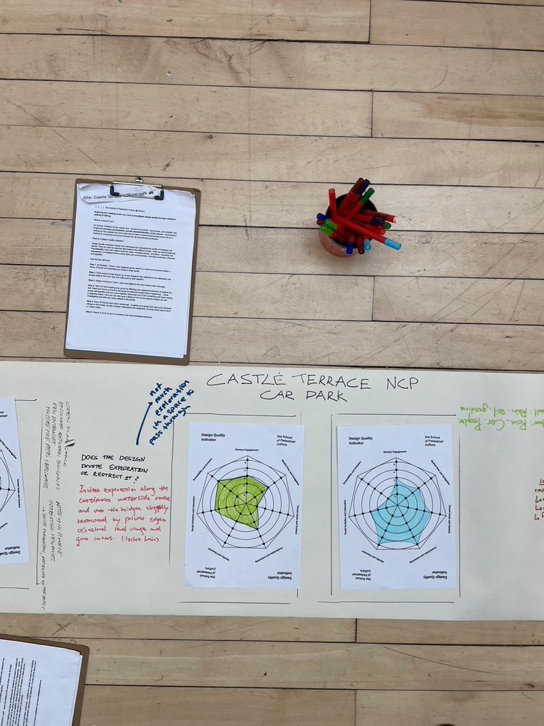 Working with Edinburgh School of Architecture and Landscape Architecture UG students at Edinburgh College of Art,Β exploring how walking art practices intersect with architectural theory and methodology. This was my first time working with over 70 participants, coordinating multiple simultaneous walks across different sites around Edinburgh. I drew inspiration from the format of a points based βalleycatβ race to send participants on an unknown treasure hunt. We explored the use of Design Quality Indicators, art scores and awareness practices in understanding psychogeography. Huge thanks to all the students who took part and braved a very wet and windy Edinburgh.Β
