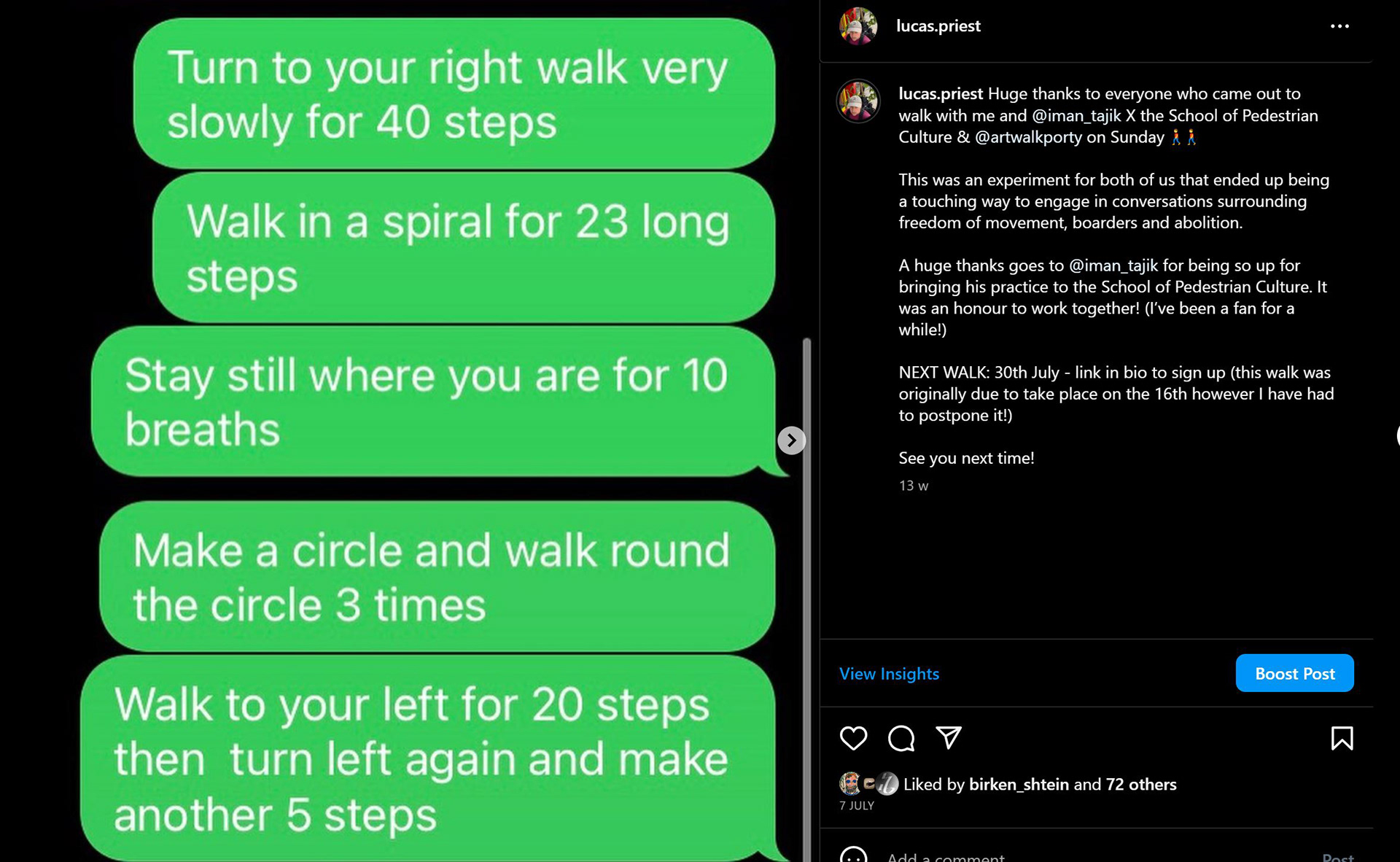 As part of our residency with Art Walk Projects in the summer of 23 we collaborated with Iman Tajik to develop a walking game/happening to explore borders, abolition and freedom of movement through walking scores.ย We didn't know how the participants would react but what resulted was a touchingย exploration of human vulnerability at the mercy of states and boarders.